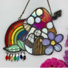 Stained glass Rainbow Mushroom Cottage suncatcher