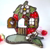 A charming strawberry house candle holder