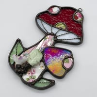 A stained glass mushroom suncatcher.